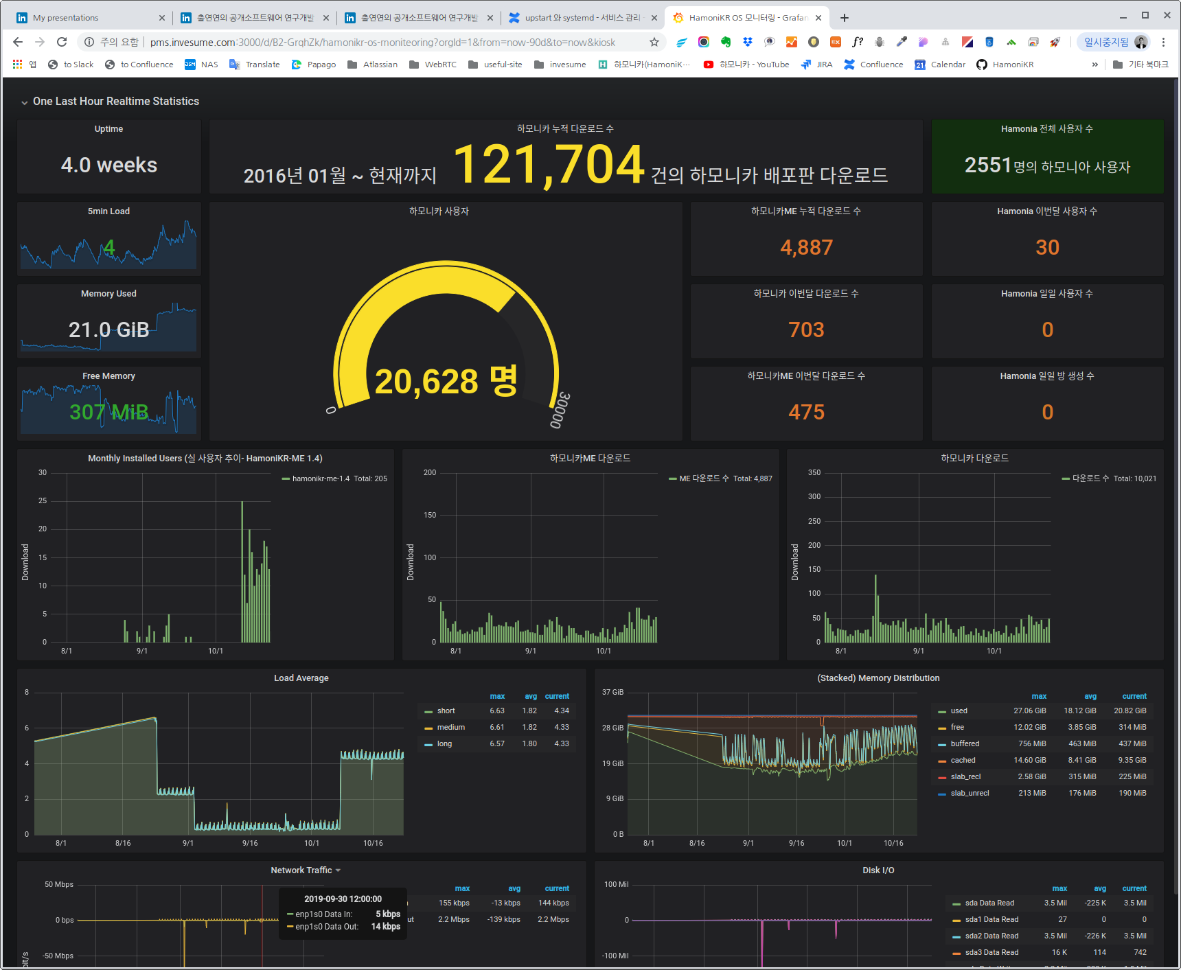 아래 화면은 오픈소스 프로젝트 하모니카의 모니터링 시스템입니다.