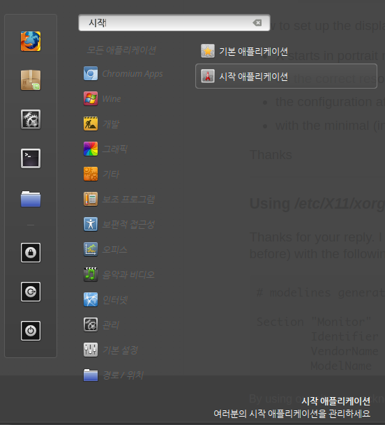 이 경우는 아래의 방법으로 수동으로 설정이 가능합니다. (시나몬을 사용하는 하모니카, 우분투, 리눅스민트에서 동일하게 적용됩니다.)